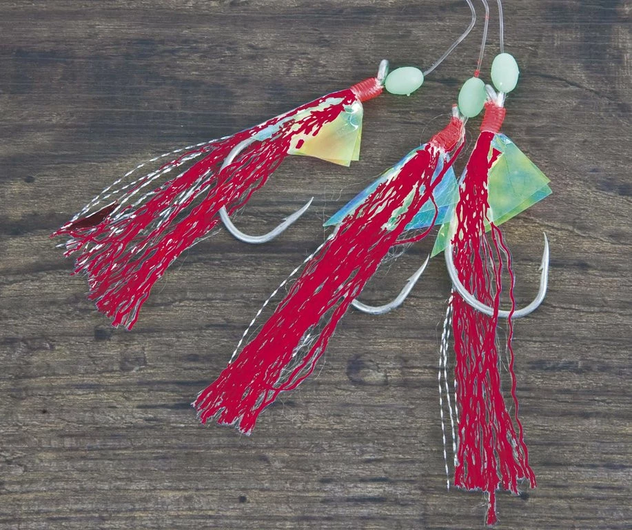 System für kapitale Dorsche und Seelachse, mit 3 Permasteel-Haken und einer Reflexfolie.