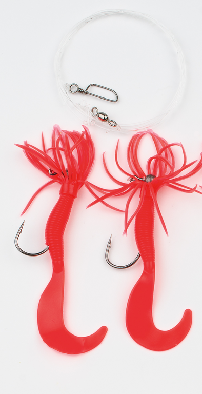 Dieses fängige und von Experten als sehr gut beurteilte Jigsystem gibt es in 5 verschiedenen Farben. Bei einer Vorfachlänge von 120cm und einer Schnurstärke von 0,70mm ist dieses Jigsystem hervorragend geeignet für die meisten Meeresfische. Neben dem altbekannten Twisterschwanz üben die Tentakeln dieses Jigsystems einen zusätzlichen Reiz auf die Fische aus. Alle fängigen Farben sind bei diesem Jigsystem verfügbar.