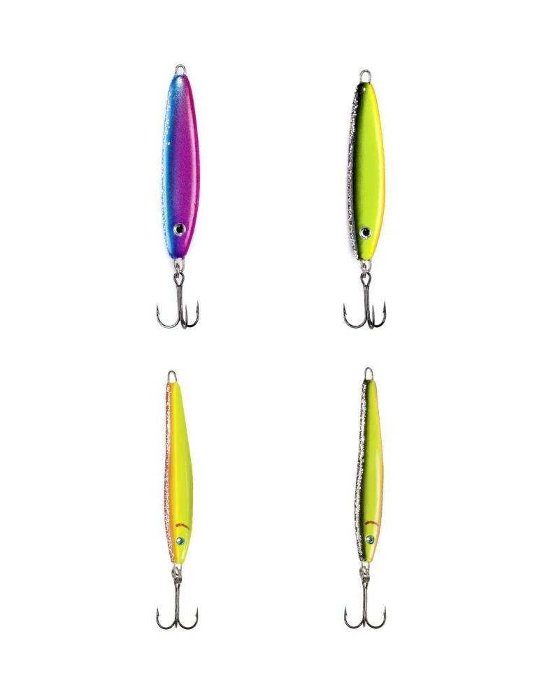 Dieser Pilker ist ein sehr beliebtes Modell mit traditioneller Form, der seine tolle Fängigkeit über die Jahre hinweg nicht verloren hat. Die klassische Form sorgt für taumelndes Sinkverhalten. Bei Insidern ist er sehr geschätzt. Der Pilker besitzt Glitzer-Nuancen auf der Rückenseite und stark reflektierenden silberfarbenen Diamant-Augen.