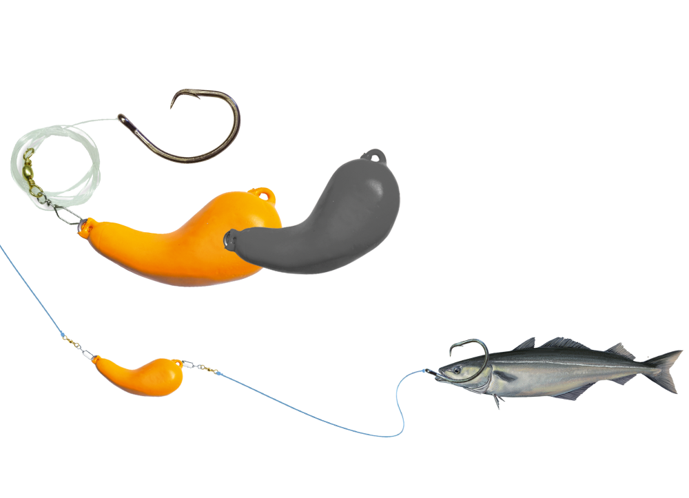 Heilbutt-Fischen mit einem ganzen Köderfisch. Dieses Thema haben Tim und Erik vom Buroysund perfektioniert. Ein einfaches aber sehr fängiges System. Die wichtigste Komponente daran, der Köderfisch. Den müsst Ihr selber fangen! Aber das System haben wir für Euch. 1,20mm extra starke Mono, richtig gebunden mit einem Schlaufenknoten, der den Kreishaken sanft aber sicher in das Heilbuttmaul eindrehen lässt. Die neuen Kreishaken von VMC (exklusiv für Eisele gefertigt) sind Black-Nickel (ohne Lichtreflexe!) in den Heilbuttgrößen XXL 14/0 und 16/0. Die Eisele-Nieren-Bleie geben dem Köderfisch den Zug nach unten. So präsentieren wir den Köderfisch perfekt in der Drift unseres Bootes. Das Vorfach ist extrem fängig und sicher, das ist sicher.
