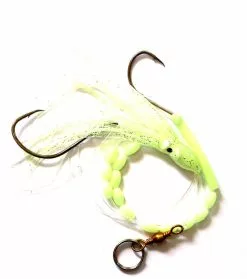 Dieses Plattfischvorfach gibt es in sieben verschiedenen Farbkombination und fünf verschiedenen Gewichtsklassen. Das Vorfach ist ca. 50cm lang, besteht aus 0,50mm starker monofiler Schnur an der Haken der Größe 1/0 gebunden sind. Weiter sind für die Erhöhung des Lockreizes Perlen und Spinnerblätter angebracht. Das Rig ist komplett bleifrei und somit auch dort zugelassen, wo Köder aus blei verboten sind. Die Gewichte reichen von 40g bis 120g und sind damit für alle möglichen Bedingungen geeignet.