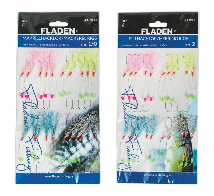 Dieses Set besteht aus vier verschiedenfarbigen Rigs mit Tinsel. Jedes Vorfach verfügt über 5 Haken der Größe 2 bzw. 1/0, sowie Fluoperlen. Die Länge der Vorfächer beträgt 135cm und die verwendete Hauptschnur hat eine Stärke von 0,60m. Die Nebenschnüre besitzen eine Stärke von 0,50mm. Die Farben der Tinsel sind Pink, Chratreuse, Blau und Silber. Somit sind die wichtigsten Farben enthalten. Die Hakrengröße 2 ist für Heringe und die Hakengröße 1/0 für Makrelen ausgelegt.