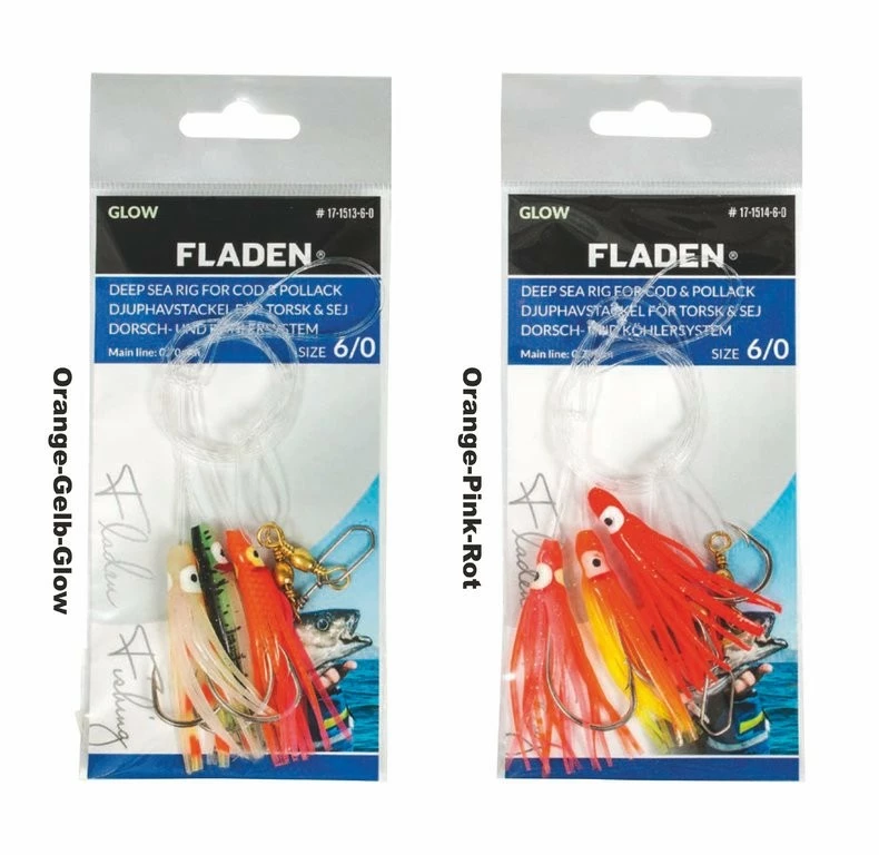 Dieses Dorsch- und Köhlervorfach gibt es in zwei Farb-Varianten und Hakengrößen. Zum einen stehen die Farbkombinationen Orange-Gelb-Glow oder Orange-Pink-Rot zur Auswahl und zum anderen sind diese in den Hakengrößen 2/0 und 6/0 erhältlich. Die Schnurstärke beträgt bei der Hakengröße 2/0 0,60mm und bei der Größe 6/0 0,70mm. An jedem Vorfach befinden sich 3 Mini-Oktopusse.
