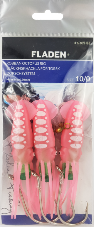 Dieses Rig besteht aus drei pinkfarbenen 10cm Flügel-Oktopussen, welche mit weißen Punkten geschmückt sind. In jeden der Oktopusse befindet sich ein Flashlight, welches bei Wasserkontakt zu blinken beginnt. Dies erhöht den Reiz des Systems. Es gibt dieses Dorschsystem mit der Hakengröße 8/0 und 10/0. Diese sind an einer 0,90mm starken Hauptschnur befestigt.