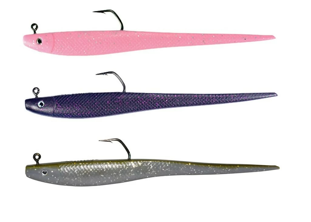Dieser Jig hat einen integrierten Bleikörper mit einem sich verschlankenden Schwanz, der für eine leichte zitternde Aktion sorgt. Er ist ausgestattet mit einen 3X starken VMC-Haken der Größe 10/0. Der Pro-Tail Eel ist in drei verschiedenen HDUV-aktiven Farben und in den Gramaturen 85g, 115g und 140g verfügbar. Der Gummifisch hat eine Länge von 23cm (9 inch).