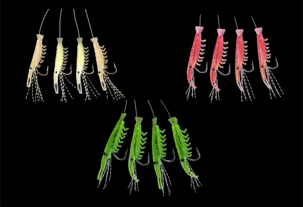 Dieses fängige Vorfach besitzt 4 Seitenarmen. Es sit perfekt montiert und geknotet mit attraktiven Shrimp-Imitaten. Diese Vorfächer sind erhältlich in drei Farb-Varianten. Die Länge beträgt 150 cm und die Hakengröße ist 4. In jeder Packung gibt es ein System.