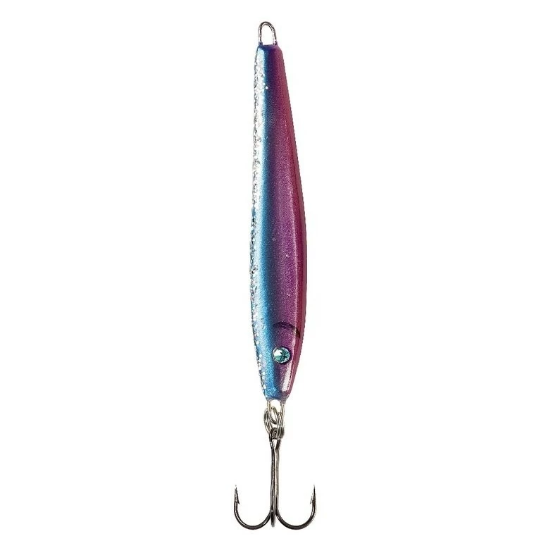 Dieser Pilker ist ein sehr beliebtes Modell mit traditioneller Form, der seine tolle Fängigkeit über die Jahre hinweg nicht verloren hat. Die klassische Form sorgt für taumelndes Sinkverhalten. Bei Insidern ist er sehr geschätzt. Es stehen 4 verschiedene Farbvariationen mit einer Glitzer-Nuance auf der Rückenseite und stark reflektierenden silberfarbenen Diamant-Augen zur Verfügung. Es gibt drei Gewichte von 60g – 100g.
