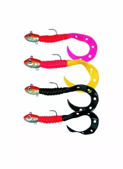 Diese UV-aktiven, mit Jig-Kopf vormontierten Dorsch-Knaller PRO gelten als eine der erfolgreichsten Meeresköder. Das Einsatzgebiet reicht von Dorsch bis Köhler. Die Farbauswahl sowie die UV-Stärke wurde so gewählt, dass für alle Einsatzgebiete und Wetterlagen das richtige Farbmuster dabei ist. Im Lieferumfang ist ein montierter und ein Ersatzschwanz enthalten. DAs Gewicht des Jigs beträgt 90g und es stehen fünf Farbmuster zur Auswahl.