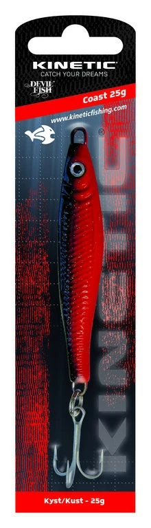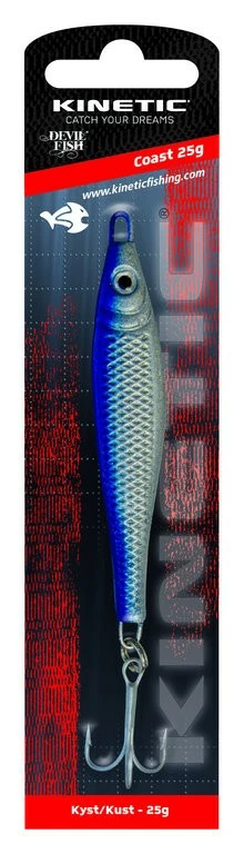 Diese fängige Pilker imitiert einen kleinen Hering. Er ist mit einem Schuppenmuster und realistisch anmutenden Kiemen ausgestattet. Er ist ideal für das Dorschangeln von der Küste aus. Es gibt diesen Pilker in vier Farben und drei Gewichten.