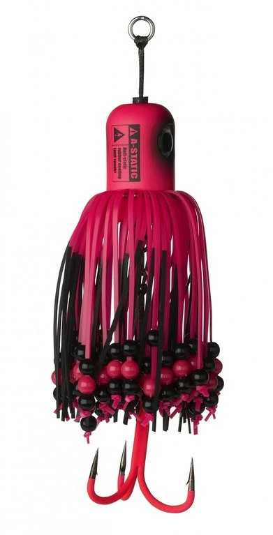 Die A-STATIC Version des original Clonk Teasers kommt hier in neuen Farben. Die Köder haben einen gummierten Kopf und Einzelhaken, um das elektrische Feld zu minimieren. Ersatzrigs mit Einzelhaken sind in verschiedenen Größen erhältlich. Die Drillingsgröße auf den fertigen A-STATIC Clonk Teasern ist 2/0 (nur 100g) und 3/0. Erhältlich ist dieser Köder in fünf Farben und 4 Gewichten. Der Drilling kann noch zusätzlich mit Fischfetzen garniert werden, sodass sich die Lockwirkung weiter erhöht. Der etwas andere Köder für Heilbutt, Dorsch und natürlich Wels. Hinweis: Der Gummiüberzug kann sich bei der Angelei abnutzen.