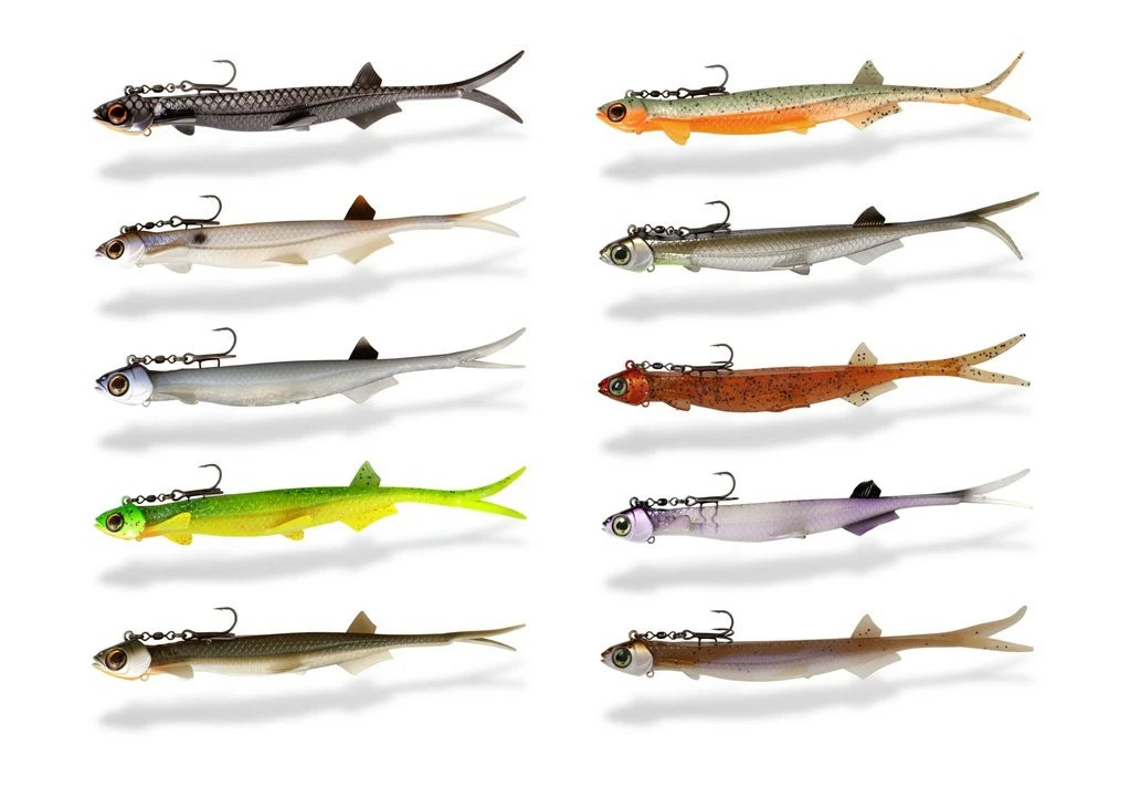 Kein Kopfzerbrechen mehr, sondern Ready to Fish! Unkompliziert und sofort einsatzbereit, die fertig montierten Freiwasserköder von Freddy Harbort. Der ultimative Pelagic Gummi, geriggt am PelaJig Jigkopf und fängig gemacht mit einem Claw Treble, unauffällig auf dem Rücken montiert. Jeder Köder wurde individuell mit der Hand auf das System gezogen und anschließend ausbalanciert, um eine maximale Fangkraft zu garantieren. Diese Freiwassergummis gibt es in den Längen 21 und 25 Zentimeter mit jeweils einem PelaJig Jigkopf ausgerüstet. Mit einem Gesamtködergewicht von 60 Gramm bei 21 Zentimetern Länge und 70 Gramm bei 25 Zentimetern. Das Modell mit 12cm ist mit einem Hakender Größe 1/0 ausgestattet und das 25cm Modell mit Hakengröße 2/0. Erhältlich ist der Shad in vielen fängigen Farben, die fließend vom Gummi zum Kopf verlaufen!