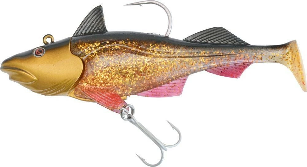 Dieser Gummifisch sieht einem Jungdorsch täuchend ähnlich. Damit ist er ein idealer Heilbutt- und Großdorschköder. Selbst bei einem Gewicht von 140g kann er noch hervorragend geworfen werden. Diese Gummifische sind mit einem Einzelhaken der Größe 6/0, sowie mit einen zusätzlichen Bauchdrilling ausgestattet. Diesen hervorragenden Köder gibt es in 6 fängigen Farben und 4 verschiedenen Gewichten. Dieser Gummifisch wird montiert geliefert. Zu jedem Shad gehört ein zusätzlicher Ersatzschwanz, der der Packung beiliegt.