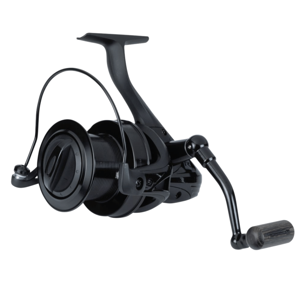 Die feinjustierbare Bremse der Rolle wurde soweit optimiert, dass sie absolut ruckfrei und geschmeidig Schnur freigibt. Dennoch leistet sie eine beachtliche Bremskraft und bietet damit reichlich Reserven. Das dezente Design, gepaart mit dem Holzkurbelknauf, ergibt ein edles Gesamtbild. Mit der optional erhältlichen flachen Spule für geflochtene Hauptschnüre deckt diese Rolle alle Segmente der modernen Karpfenangelei ab.