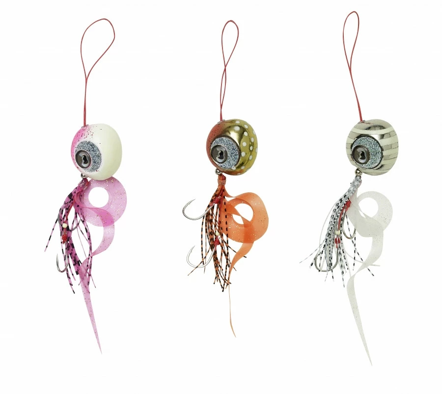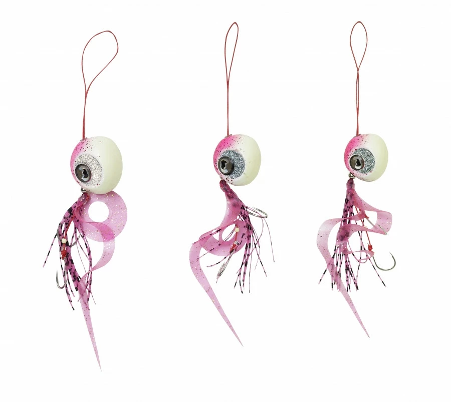 Diese kleine Tintenfisch/Kopffüßer-Imitation wurde designt, um den Meeresgrund in gerader Linie zu erreichen und bleibt in der richtigen Position selbst in starker Strömung. Erreicht schnell den Boden, so treffen Sie sogar kleinere Steinhaufen oder GPS-Positionen. Minimaler Widerstand beim Einholen macht schnelle Führung leicht. Wir haben unsere Cuttle Eyes mit täuschend echten Tintenfischaugen, sehr starken Reflexionen und nachleuchtenden Details versehen und eine Stahlrassel eingebaut, die einen Herzschlag-Sound-Effekt verursacht, immer wenn Sie den Köder vom Boden anheben und auf diesen zurückfallen lassen. Der Skirt hat die perfekte Kombination an Farben und Materialien. Der Curltail produziert Mikro-Vibrationen und spielt sowohl beim Anheben als auch Absenken. Dieser Line Thru-Köder ist ideal fürs Angeln auf Snapper mit extrem leichtem Gerät, aber auch Steinbeißer in Norwegen bringt dieser Köder um den Verstand. Ein außergewöhnlicher Köder für super technisches Vertikalangeln!