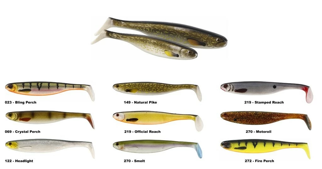 Dieser XL-Gummi stellt andere Gummiköder locker in den Schatten. Der ShadTeez ist einem lebenden Fisch täuschend echt nachgebildet und zweifach mit einer klaren Beschichtung überzogen. Dadurch sieht die Oberfläche aus, als wäre sie mit echtem Fischschleim bedeckt. Der hohe Körper, die schlanke Schwanzwurzel und der große Schaufelschwanzteller erzeugen ein Bewegungsmuster bei dem der Köder stark um die eigenen Achse rollt und dabei die Flanken immer wieder aufblitzen lässt – ideal für große Raubfische. An leichtem Jigkopf oder ohne Zusatzgewicht langsam entlang der Wasserpflanzen im Flachwasser geführt oder an schwerem Jigkopf – der Köder imitiert einen leicht verwundeten panischen Fisch. So oder so wird der Rekordfisch zuschlagen!