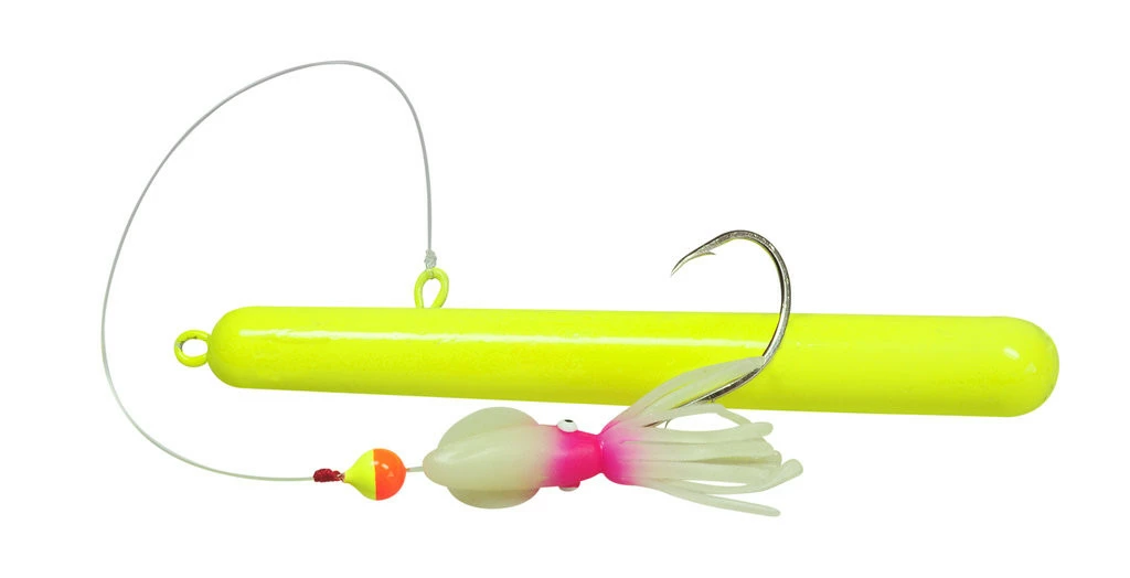 Dieses Hybrid aus Pilker und Naturködervorfach ist speziell für den Zielfisch Steinbeißer ausgelegt. Der Steinbeisser-Klopfer besticht mit seinem anziehenden Äußeren, welches in fluor-gelb gehalten ist. An der Seite des Klopfers ist das 0,80mm starke Vorfachmaterial befestigt, welche am anderen Ende eine Lockperle, einen Leuchtoktopus und einen Einzelhaken der Größe 5/0 besitzt. Der Einzelhaken wird mit Fischfetzen oder Garnelen beködert. In der Gesamtheit aller Komponenten ist dieser Köder sehr fängig. Es gibt ihn in zwei Gewichten von 360g und 580g und in drei verschiedenen Farbvarianten.