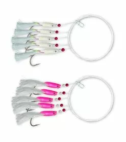 Beim Heringsangeln kommt es auf das richtige Vorfach an. Somit fangen einige Angler immer deutlich mehr Fische als andere. Das Holografix Vorfach vereint alle wichtigen Eigenschaften, damit der Fangeimer schnell gefüllt ist. Scharfe, stabile Haken gebunden mit echter Fischhaut und zusätzlichen holografischen Fäden machen dieses Vorfach perfekt. Es gibt drei verschiedene Farben mit jeweils 5 Haken zur Auswahl. Die verwendeten Haken haben die Größe 10 bzw. 8.